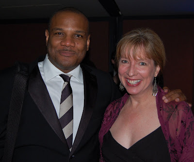 But my two favorite presenters I got to meet and talk to, so I’ll just go ahead and spill the beans: I met Elmo, or rather the man who OPERATES and speaks for Elmo, Kevin Clash, on Sesame Street. He was terribly funny, and amazingly quick witted in the ceremony, and so I told him how much I had enjoyed his performance, and then, the Big Bison asked if we might take his picture, which he obligingly offered to do.