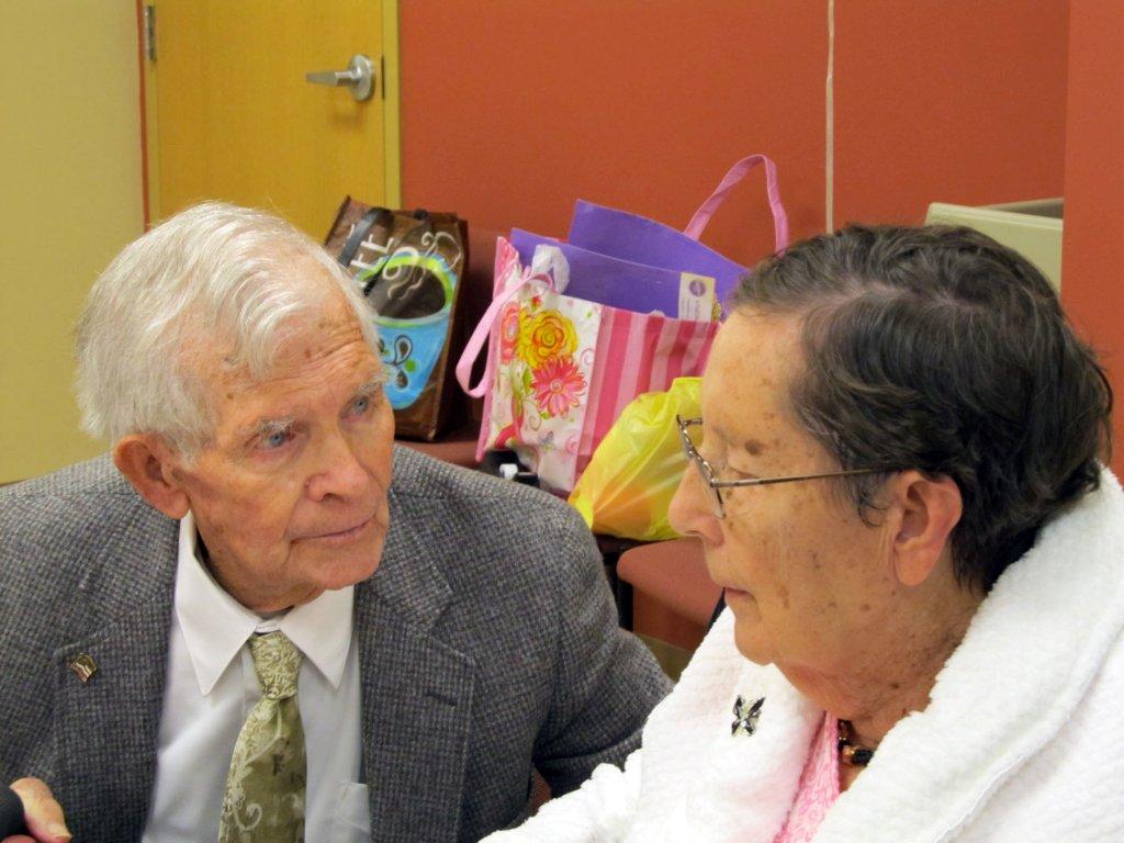 | This photo was taken by my cousin Jennifer, on the occasion of A.J. and Juanita’s 66th wedding anniversary, which they celebrated in Juanita’s hospital room. |