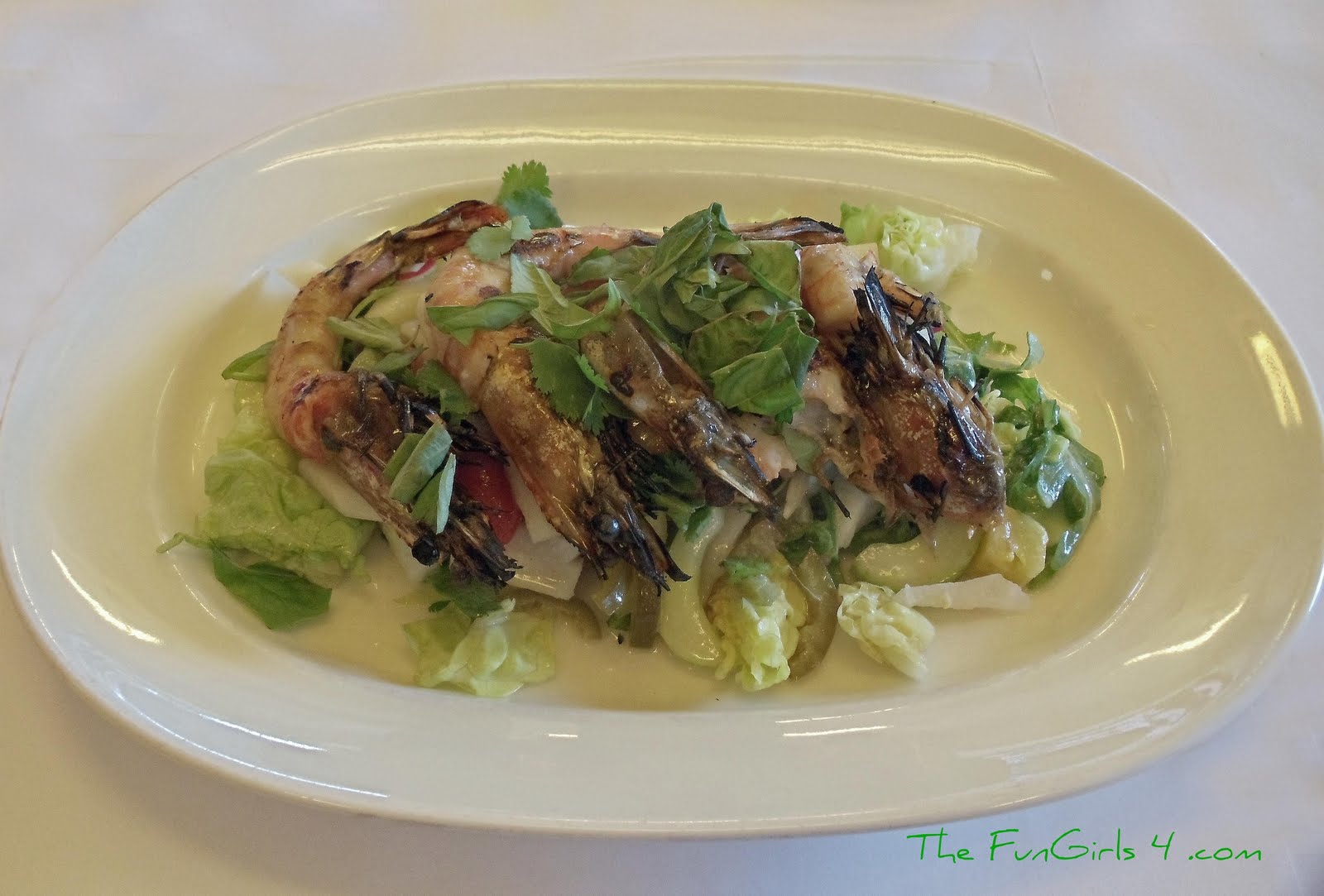 | Grilled Shrimp Salad with grapefruit, pineapple, fennel, arugala, and coconut vinaigrette. |
