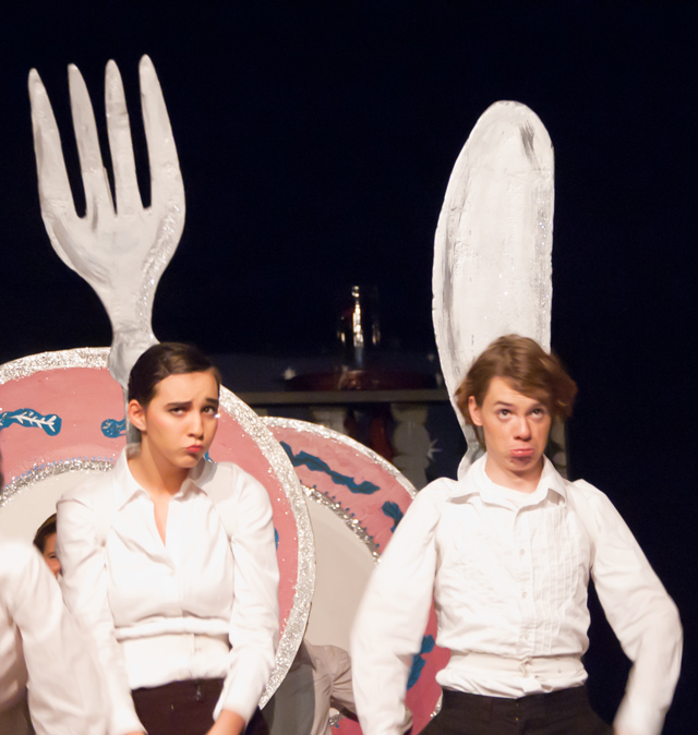 And later on, during the number that garnered the entire cast a standing ovation, “Be Our Guest”, he honed his acting skills by taking on the role of cutlery, where he had the opportunity to prove that he while he may not be the sharpest knife in the drawer, he’s still knows how to cut up. (There was some pretty cute silverware up there, I must say!)