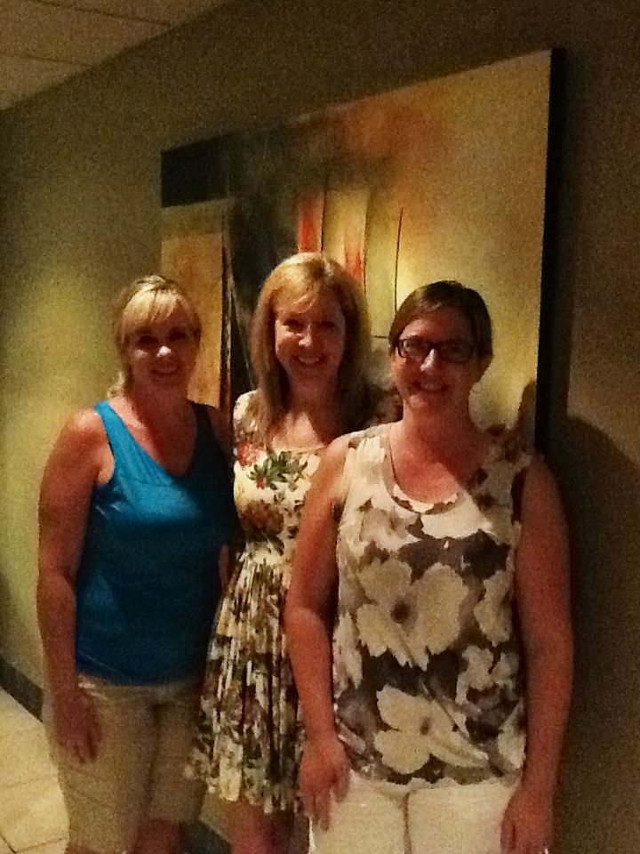 We arrived at the place where Cheri was staying, and got to meet Cheri’s family. Awesome! We stole Cheri away from her family, and checked into our hotel, and went out for dinner. We talked and laughed and shared our hearts, and ate great food. Such a sweet time! So lovely a time were we having, in fact, that I forgot to take any pictures till we were about to leave the restaurant. We had stopped off in the bathroom before we left, and there we asked a woman to take our picture with my ipad. So, it’s not the best quality of picture, but you’ll get the idea. We were three friends, really, really happy to see each other, having had a lovely, lovely evening together.