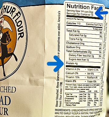 | Pointing out the higher level of Protein in a serving of King Arthur Unbleached Bread Flour |